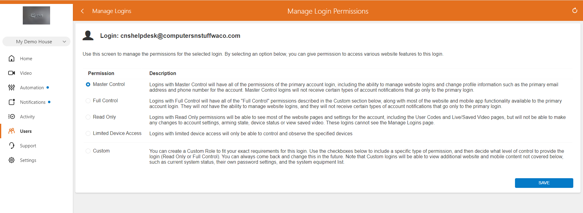 7) Select what level of access you want this profile to have on the account.