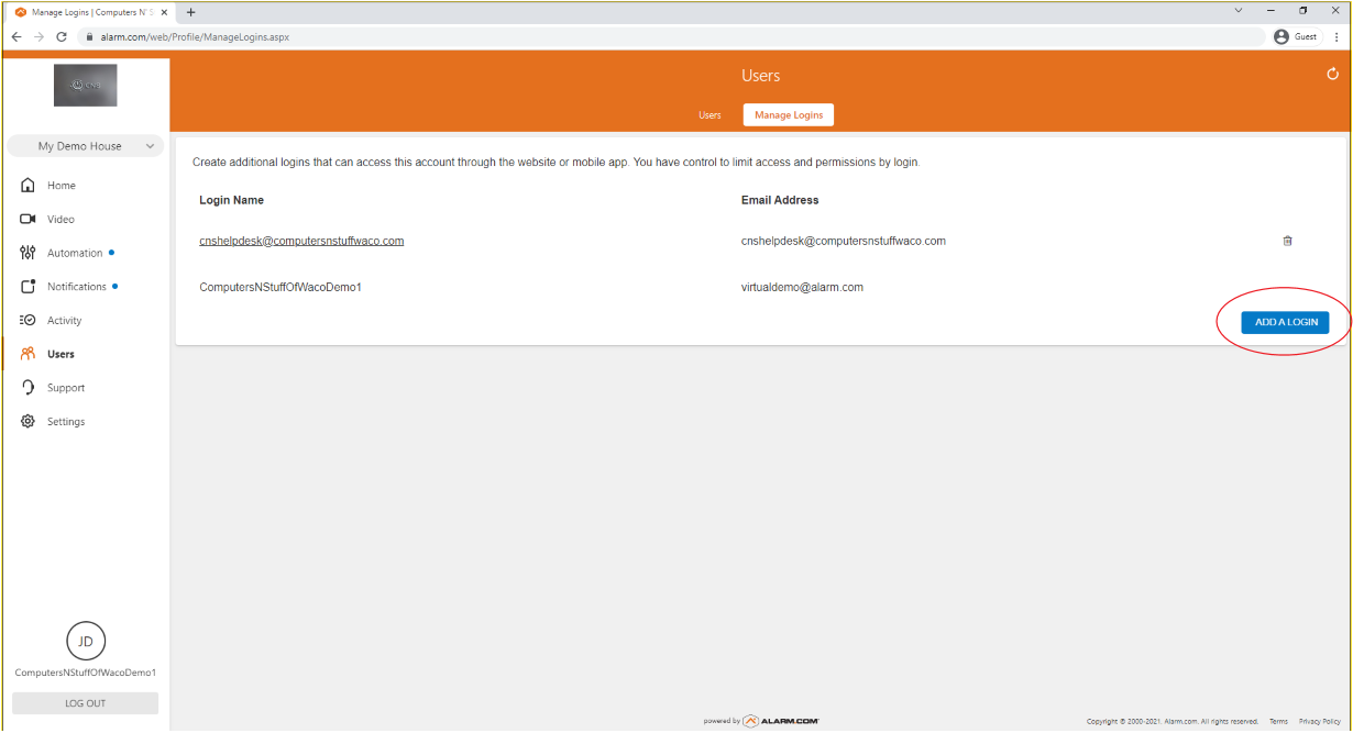 4) Click on Add a Login.